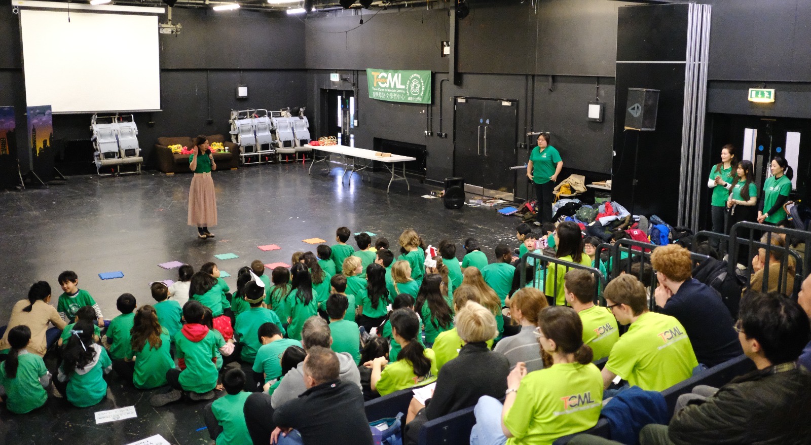 這學期期末為慶祝華園TCML於2023年評鑑特優,同時也是大人小孩每個班級完成目前所學課本,準備下學期升班的結業學期,特別創舉式的租用戲劇教室,將成人及小孩班的期末展演共同辦理,讓八個班級各做五分鐘的語言學習成果呈現,有話劇、角色扮演、吟詩誦詞、帶動唱等。