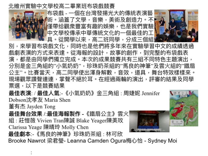 北維州實驗中文學校2024高二畢業班布袋戲競賽