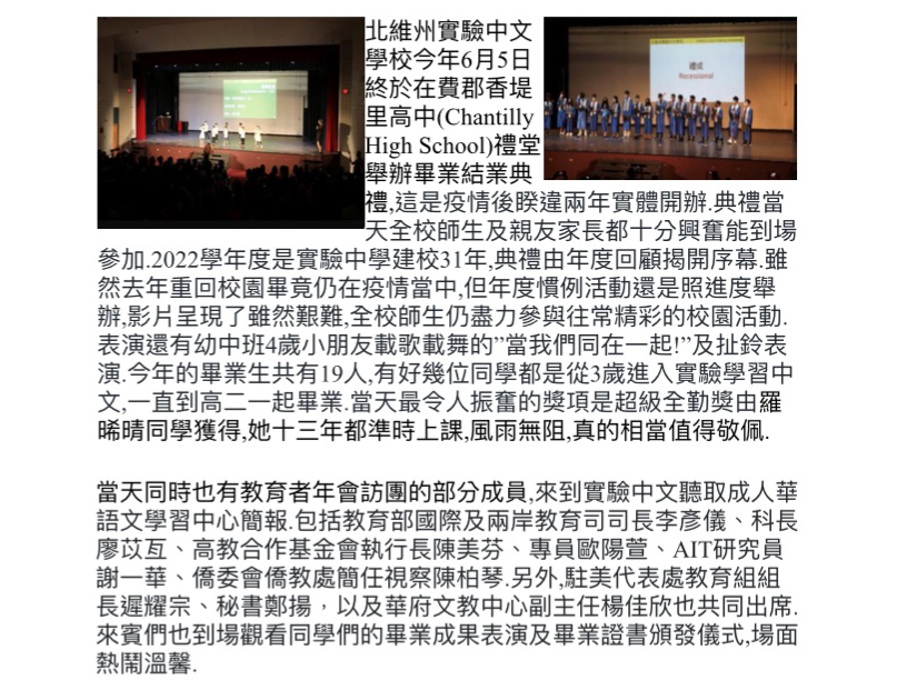 北維州實驗中文學校2022畢業結業典禮