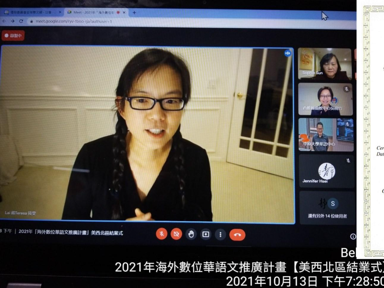 美國德州奧斯汀中文學校實體與線上同步結業典禮與正體漢字文化節頒奬典禮