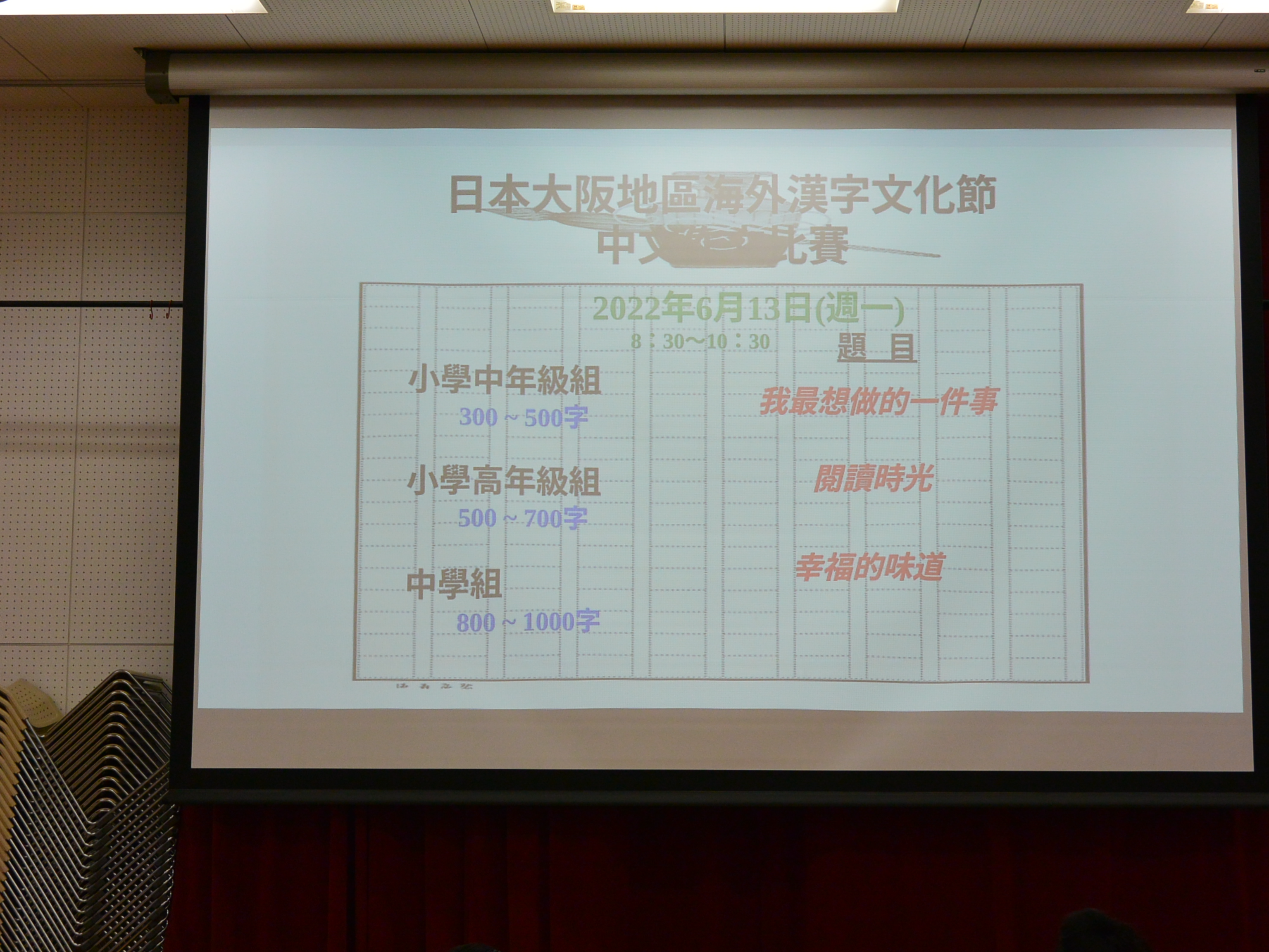 日本大阪中華學校 2021 漢字文化節:華語文作文比賽