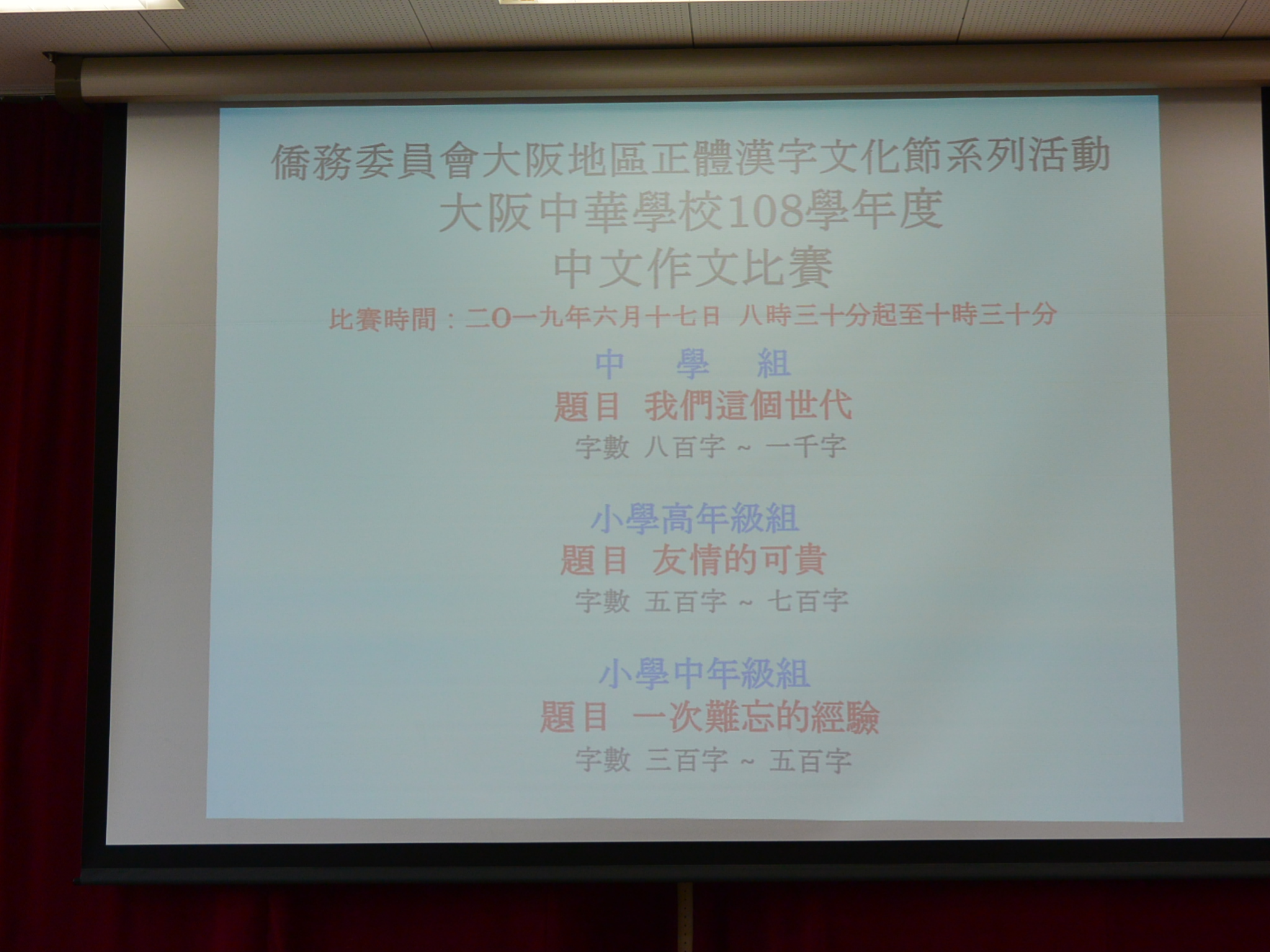大阪中華學校2019漢字文化節-華語文作文比賽