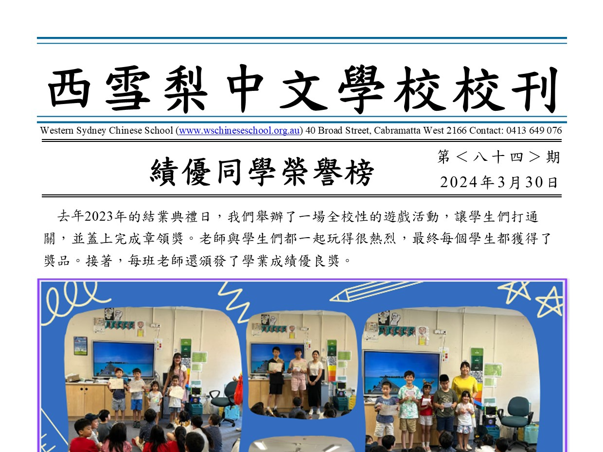 澳大利亞西雪梨中文學校第84期校刊