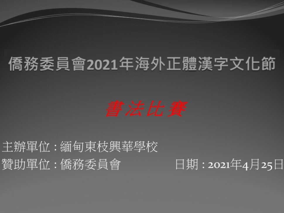 緬甸東枝興華學校 2021 漢字文化節活動:書法比賽(線上)