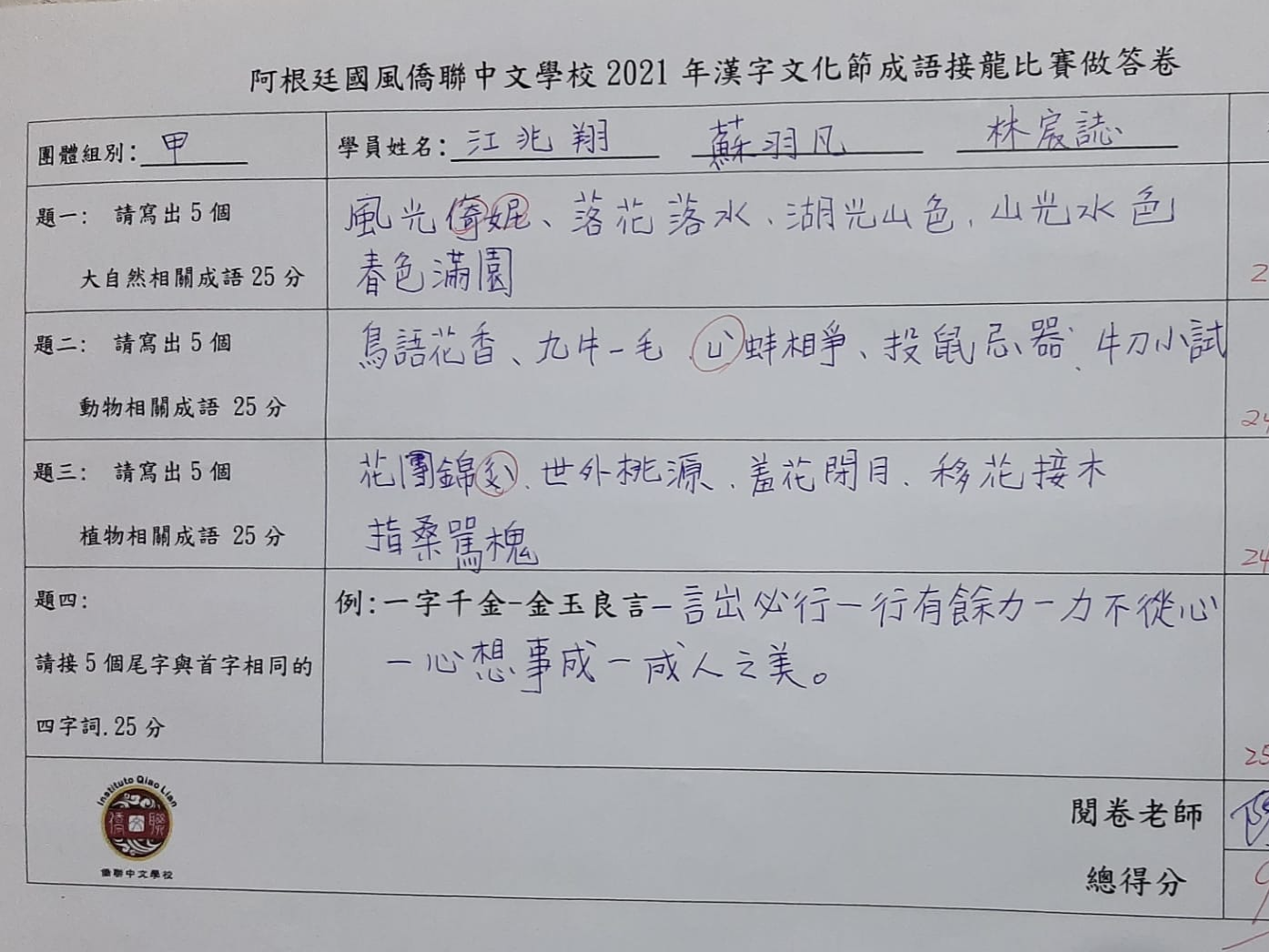 國風僑聯中文學校2021年漢字文化節第二季-成語接龍